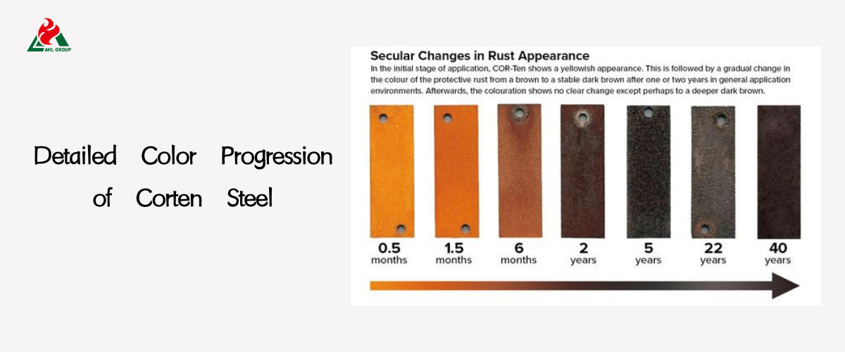 Dramatic color shifts will cease after an initial 12-18 month stabilization period. However, the steel retains its “living” quality—colors may subtly deepen or shift slightly with surface moisture levels, while the overall hue remains stable.