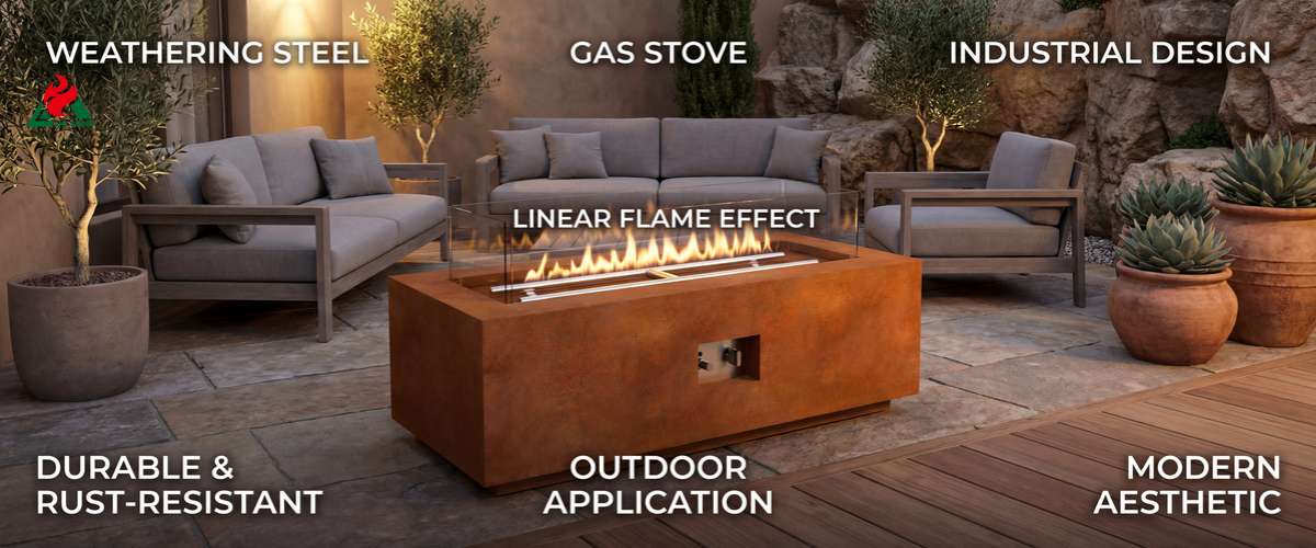 Heat generated during daily use accelerates and deepens the rusting process. Fire pits develop a rich, deep, near-black patina faster than other components. This is a normal and desirable characteristic, adding a unique, aged beauty to the piece.