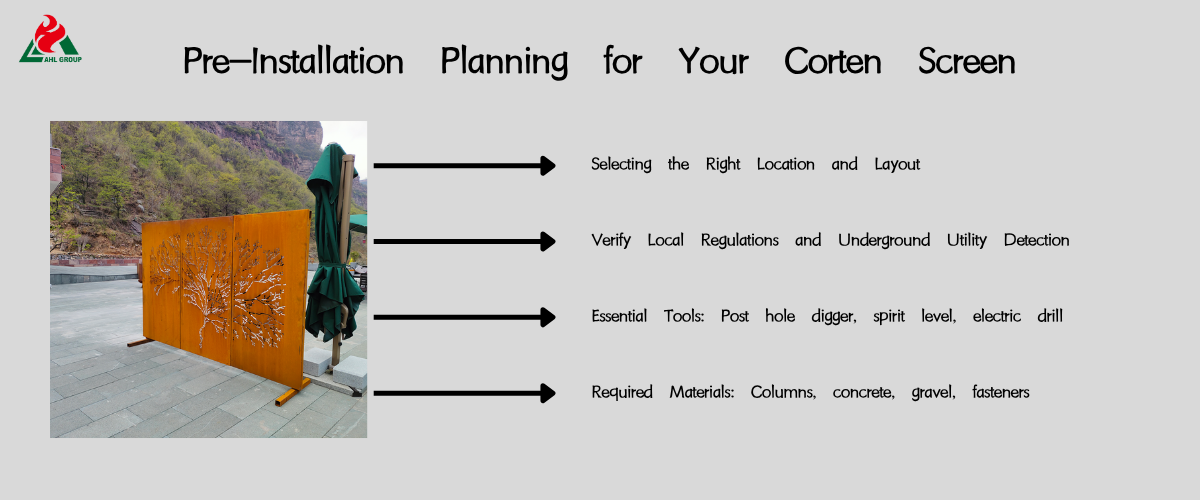 Having all necessary equipment ready will ensure a swift and efficient installation process for the Corten metal screen.