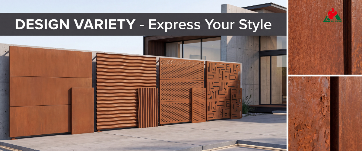 Weathering steel pairs exceptionally well with deep bronze or black window frames, natural wood trim, and unpainted concrete. Avoid using bright white or glossy finishes, as they may clash with the rustic, weathered tones.