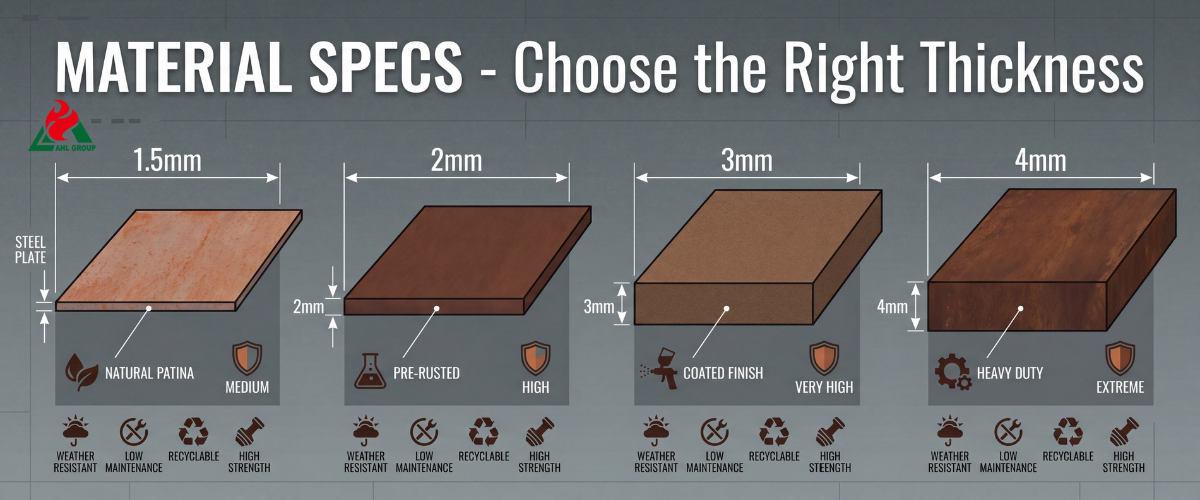 Thin (≤2 mm) sheets are prone to warping and denting and may fail to form a stable rust layer. For most exterior cladding applications, sheets with a minimum thickness of 3 mm should be used.