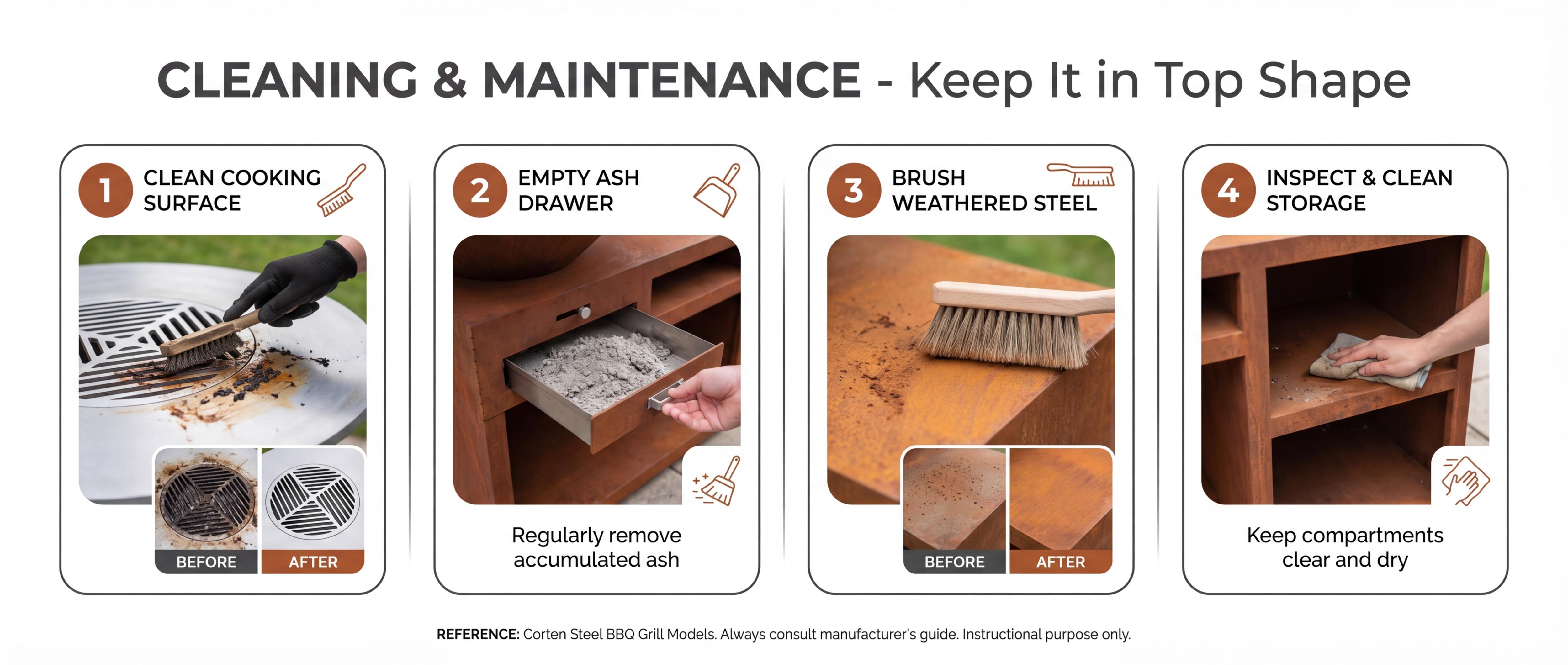 Weathering steel has different properties from ordinary steel. Its rust-like appearance is not a defect—it’s a self-protective layer that strengthens over time. This means that what might look like damage on a standard grill is perfectly normal for a weathering steel grill. Understanding this distinction is key to proper maintenance and repair.