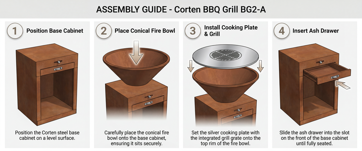 Please view your Corten steel BBQ grill as both a practical tool and a design feature. With proper care, it will provide you with reliable performance and timeless beauty for years to come.