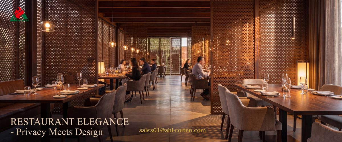 In the hospitality and dining industry, the guest experience is closely tied to the comfort of the space. Corten privacy screens allow restaurants to create semi-private dining areas that do not completely enclose the space, while maintaining airflow and reducing visual and auditory distractions. Unlike fabric or glass partitions, weathering steel screens are resistant to grease and moisture and can withstand frequent cleaning, making them ideal for high-traffic dining environments. Additionally, laser-cut patterns can reinforce brand identity by subtly integrating logos or thematic designs into the dining environment.