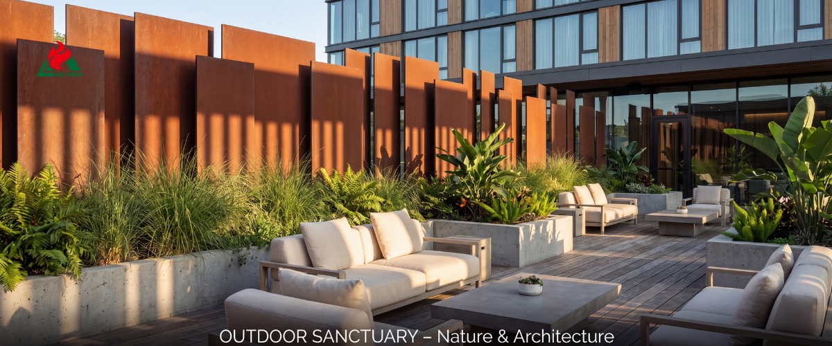 Modern office environments prioritize outdoor collaboration areas and employee well-being. Corten metal screens help create these environments by establishing functional micro-spaces—such as quiet zones, meeting corners, or shaded break areas—without compromising the sense of openness. From a facilities management perspective, weathering steel screens require lower maintenance costs compared to painted steel or wood, which necessitate ongoing upkeep, thereby reducing operational expenses.